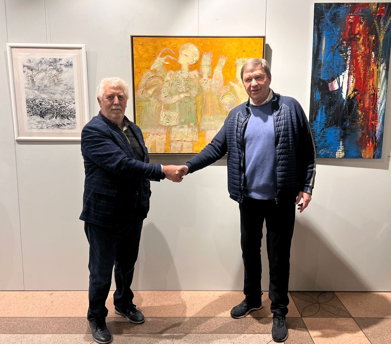 – Радію можливості бути частиною цього проєкту своєю роботою «Маланка» із циклу «Українські свята», – коментує галерист, художник і громадський діяч Михайло Поживанов. – Моя монохромна Маланка доповнює «Вертеп» веселим народним карнавалом. Щира, жива атмосфера відкриття і відчуття свята, яке зараз цінуєш по-особливому. Дякую керівникам академії, академікам, почесним академікам, членам НСХУ, всім колегам-художникам за теплі зустрічі та змістовні роботи. Чудовий вечір!