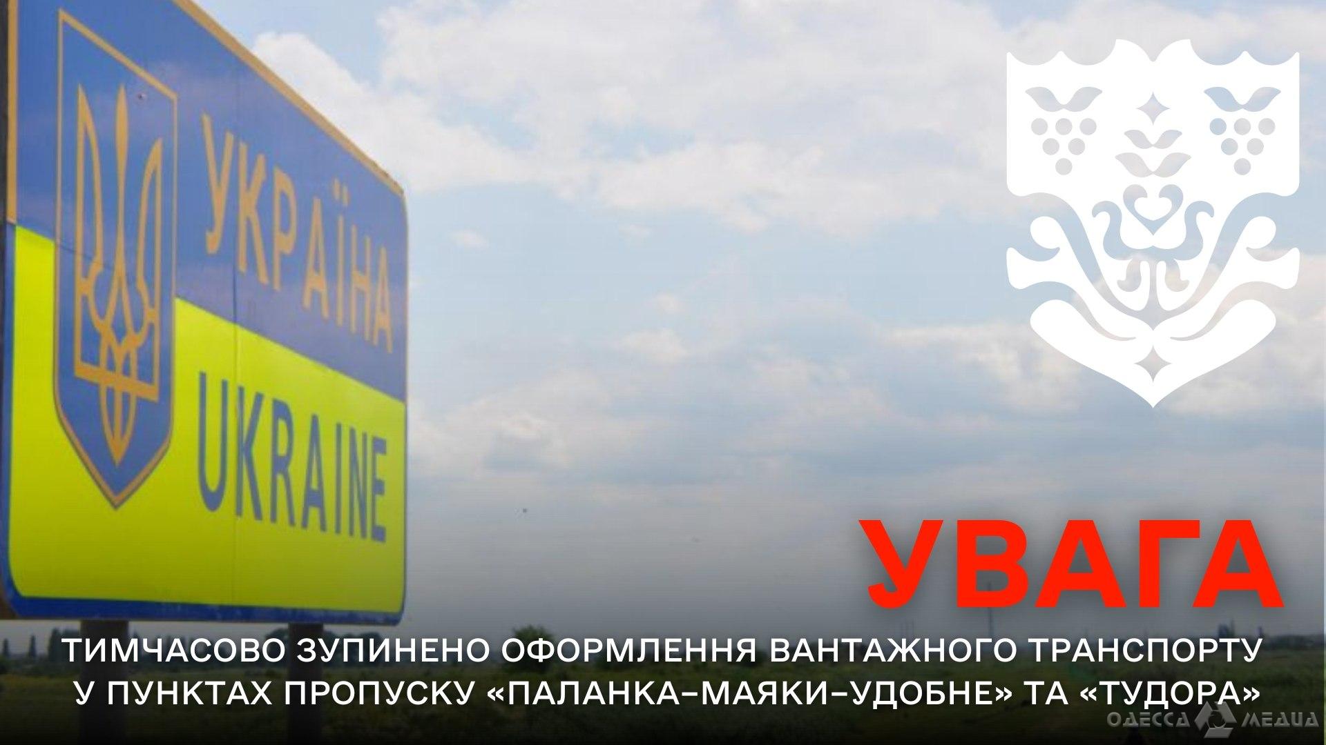 У зв’язку з ускладненням погодних умов та ожеледицею тимчасово зупинено оформлення вантажного транспорту у пунктах пропуску «Паланка–Маяки–Удобне», «Тудора» (суміжний з українським пунктом пропуску «Старокозаче»), повідомляє Південне регіональне управління Держприкордонслужби України.