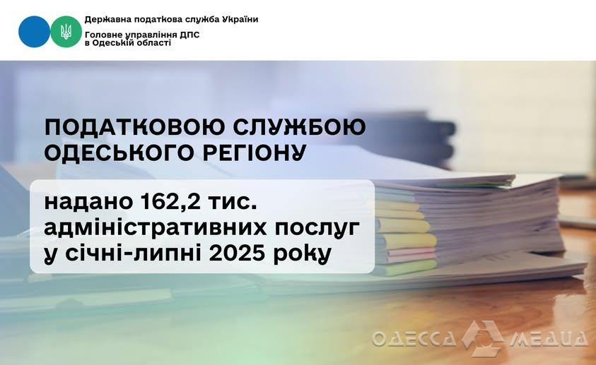 За січень-липень 2025 року платникам податків регіону Головним управлінням ДПС в Одеській області надано 162 151 адміністративну послугу, повідомив начальник Головного управління ДПС в Одеській області Юрій Гурський.