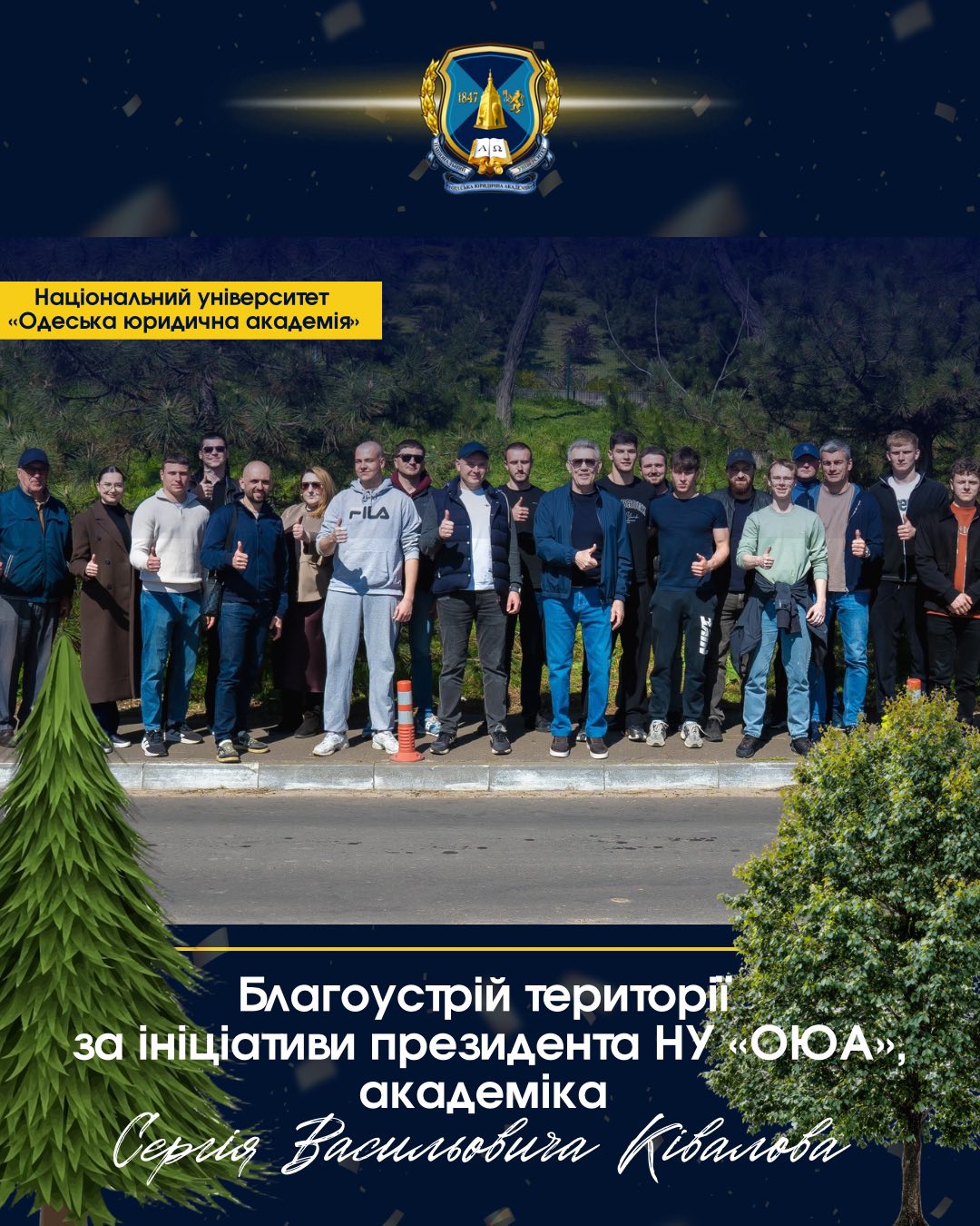 За ініціативи президента НУ «ОЮА», академіка Сергія Васильовича Ківалова, студенти та співробітники Університету долучилися до заходу із благоустрою території.